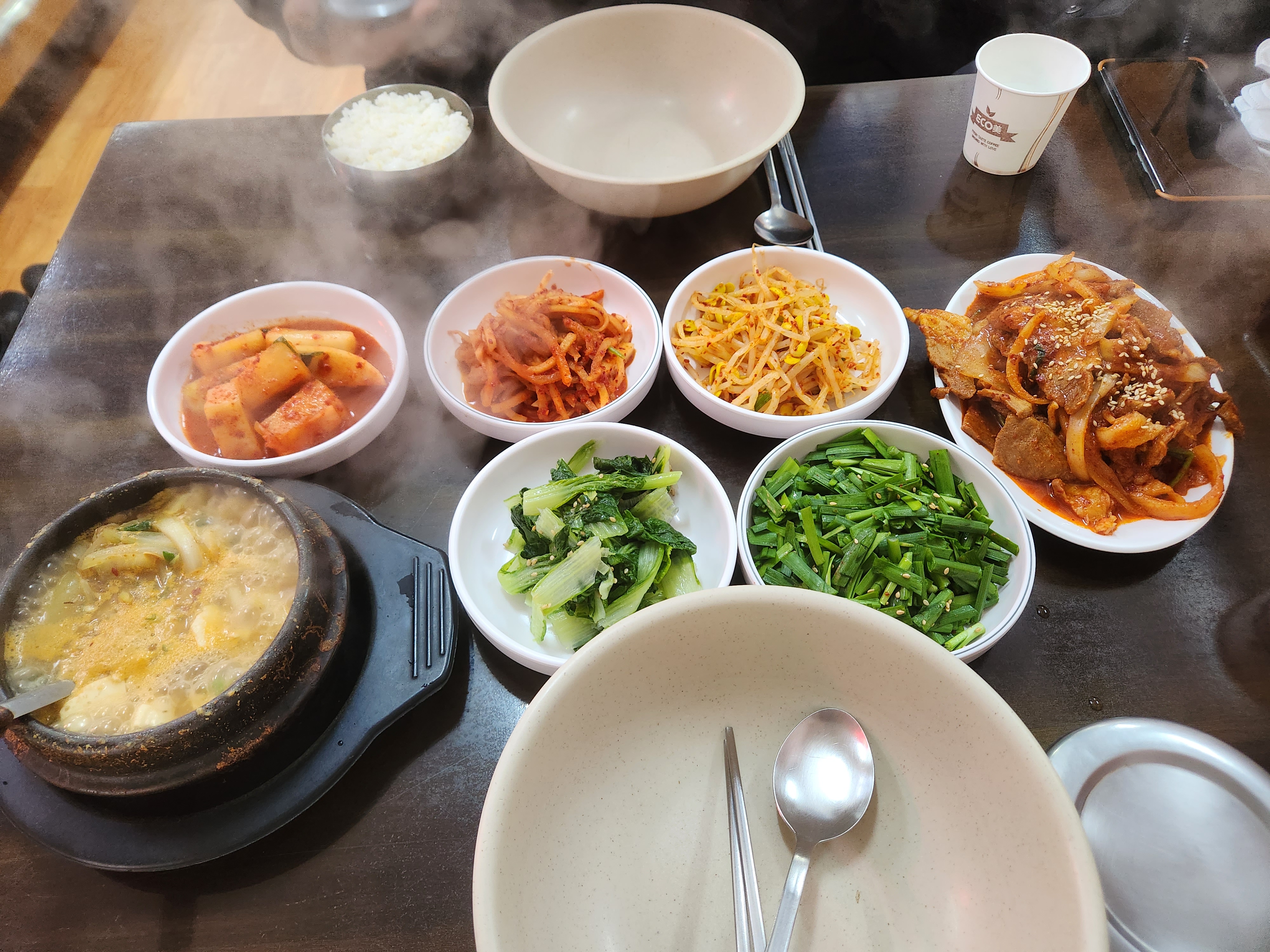 고기의 지방부분이 꽤 있는데 먹으면 느끼해질때 쯤에 아래 사진에 있는 청국장 한입 떠먹으면 맛의 밸런스가 아주 잘 잡힌다고 할 수 있습니다.